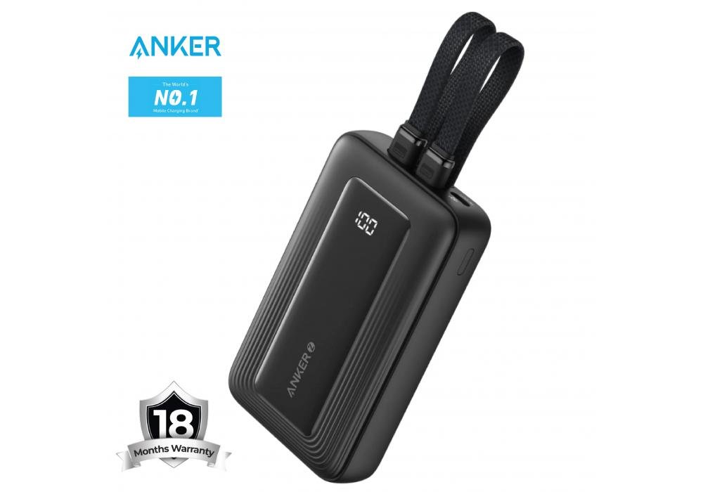 Anker Zolo Power Bank 10000mAh 30W with Built-in USB-C and Lightning Cables A1680 (Black) – 18 Month Warranty