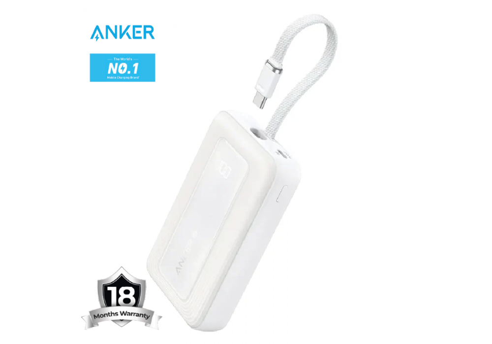Anker Zolo Power Bank 20000mAh 30W Portable Charger with Built-in USB C Cable A1689 (White) – 18 Month Warranty