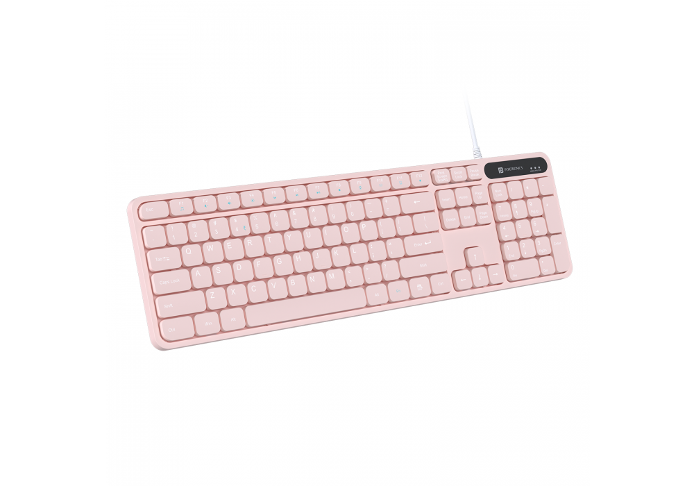 AR/EN Silent KC-01-E USB Wired Keyboard with Large Keycaps, Noise-Free Typing, Fn Multimedia Hotkeys, Full-Size Layout with Num Pad, Ergonomic Design, 1.5m USB Cable, for Laptop, PC, Mac – Baby Pink