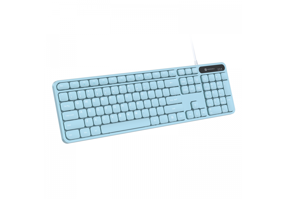 AR/EN Silent KC-01-E USB Wired Keyboard with Large Keycaps, Noise-Free Typing, Fn Multimedia Hotkeys, Full-Size Layout with Num Pad, Ergonomic Design, 1.5m USB Cable, for Laptop, PC, Mac – Light Blue
