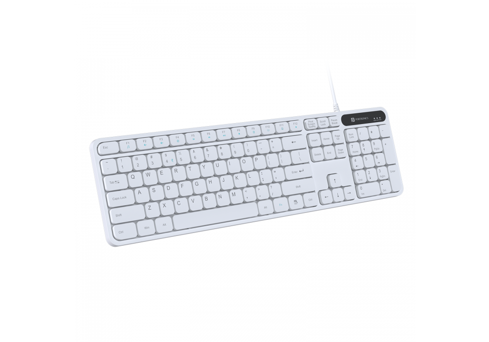 AR/EN Silent KC-01-E USB Wired Keyboard with Large Keycaps, Noise-Free Typing, Fn Multimedia Hotkeys, Full-Size Layout with Num Pad, Ergonomic Design, 1.5m USB Cable, for Laptop, PC, Mac – White