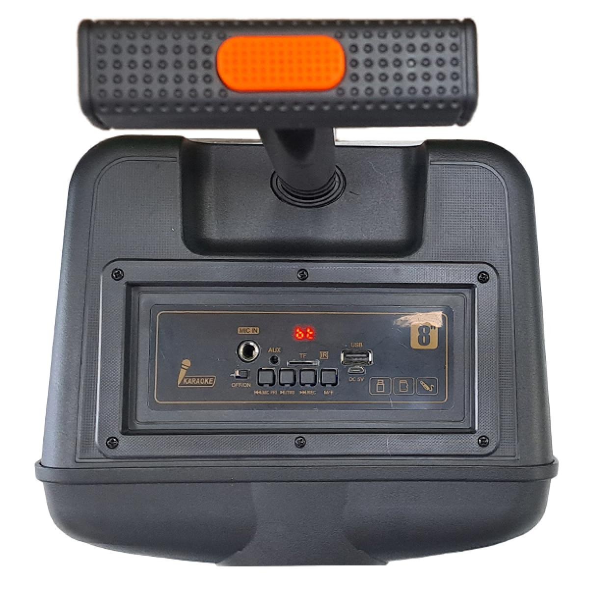 Powerful sound ( 20w max) .USB port and TF card support ( 32 GB Max memory ).AUX in support.Mic in s8-inch.8 inch Driver size.10 meters (Max ) wireless transmission range.2400 mAH Battery capacity.Radio mode.corded microphone is included.Remote control is included .Big size form factor ( 256 * 228 * 421 ) mm .