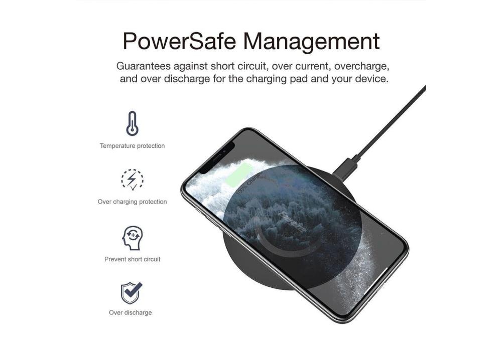 15W fast charge for Huawei, Xiaomi, Oppo, One-Plus and other compatible Android devices.None-Slip designSimply put your phone on the center of the charging pad and the circular non-slip ring will ensure the wireless charging is stable.SlimUltra-thin design in only 7mm.PowerSafePowerSafe Management guarantees protection for your device.