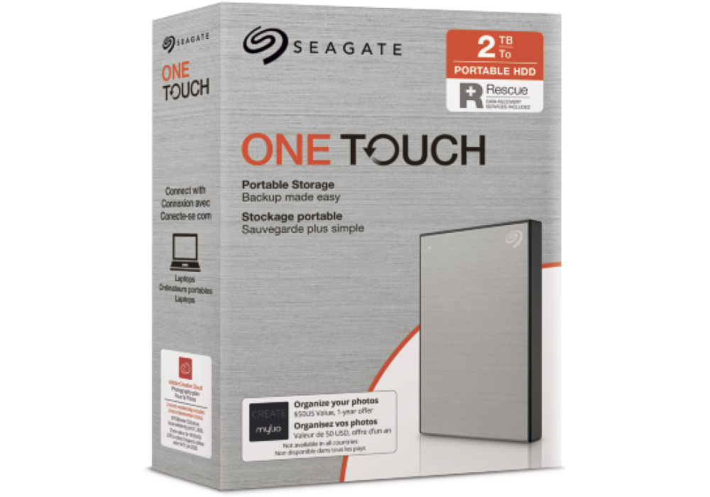 External Seagate One Touch +Rescue 2TB, Portable HDD USB 3.0 Micro-B -Silver