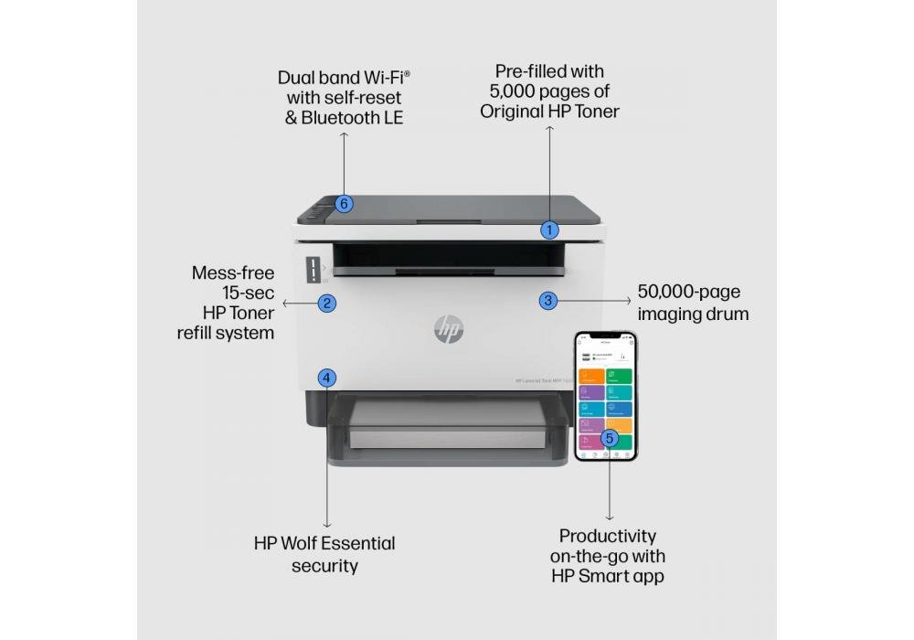 From the manufacturerHP LaserJet Tank MFP 1602W Printer, White – [2R3E8A]Experience less downtime and refill toner in just 15 seconds with ultra-high yield HP toner refill options.Engineered for high-volume printing – pre-filled with 5,000 pages of toner in the tank.Easily refill Original HP Toner in 15 seconds.Work efficiently with fast printing, MFP versatility, 50,000 page imaging drum, and HP Smart app.Maximize your uptime with print speeds up to 22 ppm.Scan your paper document from your scanner to PDF file using Adobe Acrobat.This printer works with wireless connectivity and can be used to print from mobile devices.