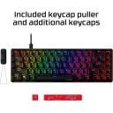 From the manufacturerPlay VideoCompact 65% form factorThe 65% form factor frees up more mouse space than a ten keyless keyboard, but keeps dedicated arrow keys, Page Up/Down, Home, and Delete keys.Aircraft-grade aluminum bodyThe aluminum casing keeps the keyboard structurally sound and stable, great for long use.Double shot PBT keycapsDurable PBT keycaps that are resistant to wear, friction, and solvents. Functions are printed on the sides of the keycaps for quick recognition.HyperX Mechanical switchesHyperX key switches are balanced for speed and accuracy to help provide faster keypresses with fewer mistakes.RGB backlit keysGet brighter, more luminous RGB lighting, thanks to the exposed LED design of the HyperX mechanical switches.Customize with HyperX NGENUITYCustomize Game Mode, build macros, and set up per-key lighting and effects.Adjustable keyboard anglesTwo-step keyboard feet allow for up at 3 different tilt angles. A detachable USB-C cable makes this ultra-compact keyboard super portable.Puller and additional keycapsA keycap puller, an additional Esc key, and the special alternate spacebar design for the Alloy Origins 65 are included for additional customization.