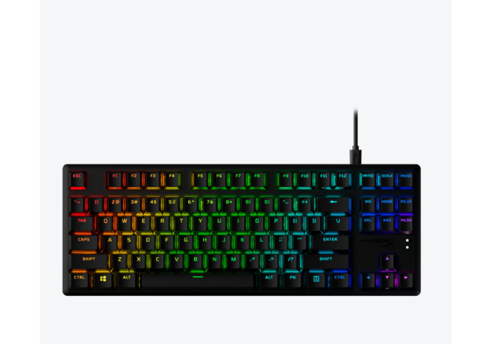 From the manufacturerQuality, durable PBT keycapsThese durable, texture PBT keycaps also feature side-printing, removing the printing from contact to ensure long-term legibility.HyperX Mechanical SwitchesHyperX-designed key switches blend responsiveness and accuracy. Rated for 80 million keypresses with no loss of quality.Aircraft-grade aluminum bodyThe aluminum casing keeps the keyboard structurally sound and stable when the action gets intense and the game hangs in the balance.Compact designAlloy Origins is full-sized, but its sleek, space-saving form factor frees up room on crowded desktop setups.Radiant RGB lighting effectsHyperX mechanical switches feature an exposed LED for brighter, more luminous RGB lighting.CustomizationCustomize Game Mode, take greater control over lighting effects, and set up your own macros.3 Adjustable keyboard anglesAdjust the two-step keyboard feet for three different angle settings (3°, 7°, or 11°), whichever makes your wrists the most comfortable.Anti-ghostingGame Mode, 100% anti-ghosting, and N-key rollover.Ensure that all your keypresses register.