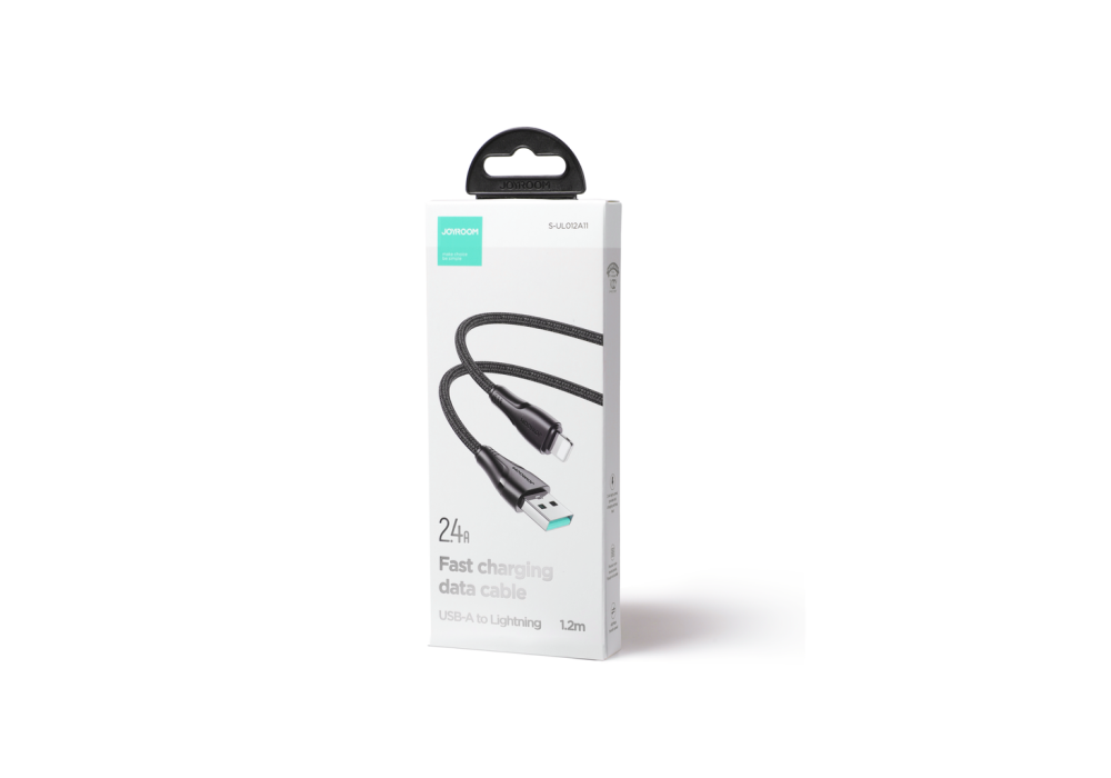 Surpass Series 2.4A 1.2m USB – Lightning Cable – Joyroom S-UL012A11Fast and safe charging and data transfer – this is how the Joyroom USB- Lightning cable looks like in a nutshell. The Surpass Series is distinguished by a thicker core and a very durable braid. Thanks to the reinforced plugs, the USB- Lightning cable will work even after repeated use. With this cable, you can connect your iPhone or iPad to any device with a USB connector, e.g. a laptop or computer.The most important advantages of the Joyroom Surpass Series S-UL012A11 USB- Lightning cable:Provides fast phone charging . With up to 2.4A, you can charge your iPhone 14 Pro to 65% in just 30 minutes (according to the manufacturer)It will seamlessly transfer your data from your phone to your computer . The Joyroom cable provides a data transfer speed of 480 MbpsTakes care of your phone’s battery life . The smart chip starts the slow charging mode when the battery capacity reaches 80%. This reduces the charging temperatureWithstands repeated connection to mobile devices . The plugs have undergone rigorous bend testingAdapted for long use . The cable core is thicker and braided with a strong nylon materialPerfect for use at home or office . It has a comfortable length of 1.2 metersSpecification:Manufacturer: JoyroomModel: S-UL012A11 Surpass SeriesConnectors:USBLightningSupported functions: charging, data transmissionCurrent: 2.4ACable length: 1.2mData transfer speed: 480MbpsMaterial: aluminum alloy, nylon braided cableBlack colour