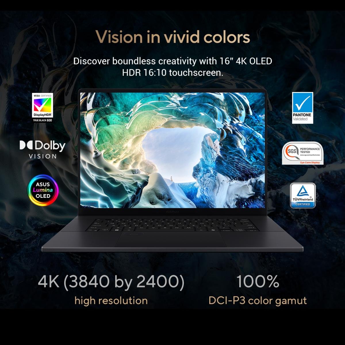 Laptop ASUS ProArt P16 AMD Ryzen™ AI 9 HX 370 Processor XDNA™ NPU up to 50TOPS NVIDIA GeForce RTX 4070 8GB GDDR6 16″ 4K OLED 500nits HDR Touch – Nano Black