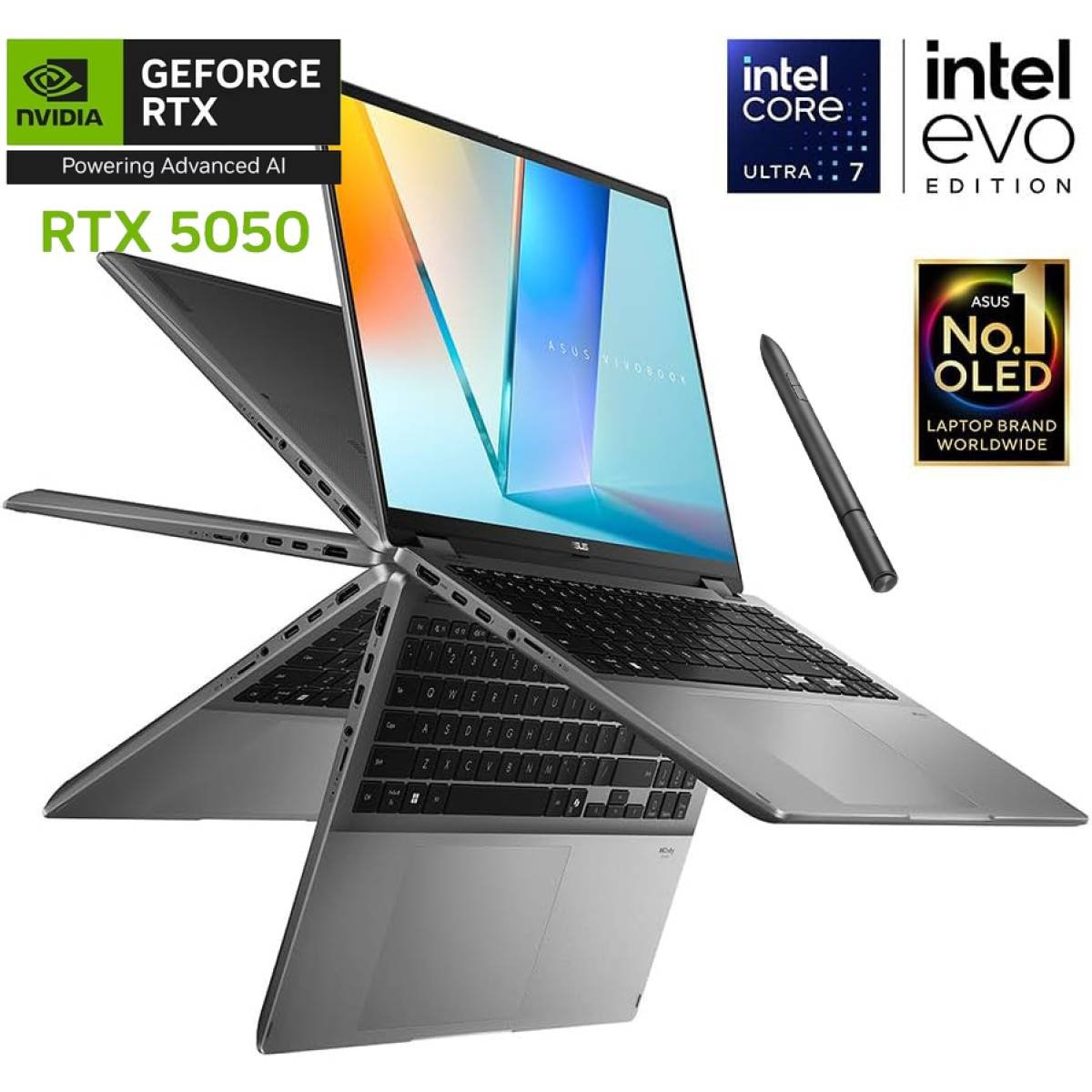 Laptop ASUS Vivobook 16 Flip (TP3607SH), Intel® Core™ Ultra 7 256V, 16GB LPDDR5X, 1TB SSD NVMe, 16″ 3K OLED Touch w/ SA203H Pen, Thunderbolt 4, Wi-Fi 7, BT 5.4 – Matte Gray