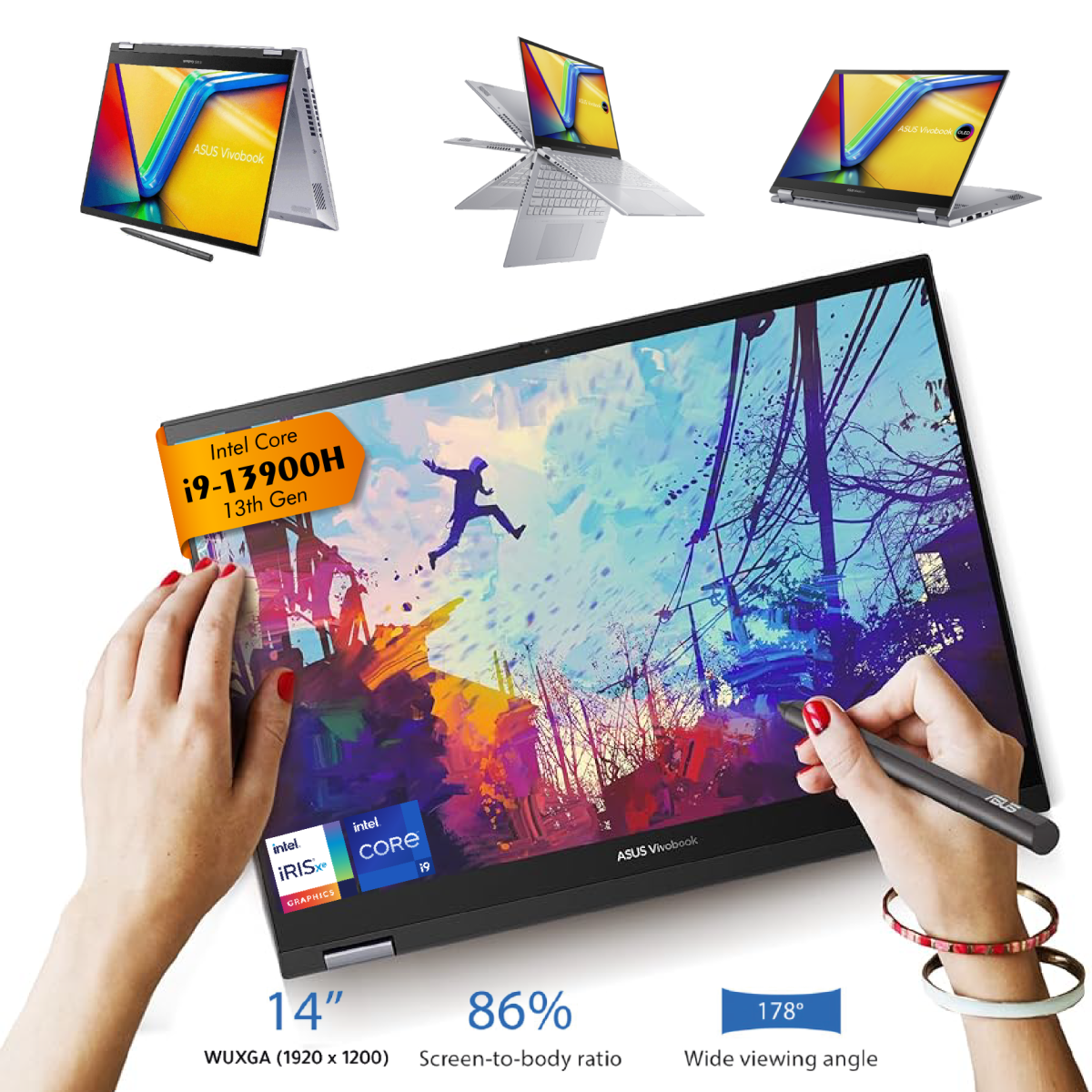 Laptop ASUS Vivobook S 14 Flip (TP3402VA) Intel® Core™ i9-13900H Processor, 16GB DDR4, 1TB M.2, 14.0″ WUXGA Touch Stylus, Windows 11 Home | 13th Generation – Cool Silver