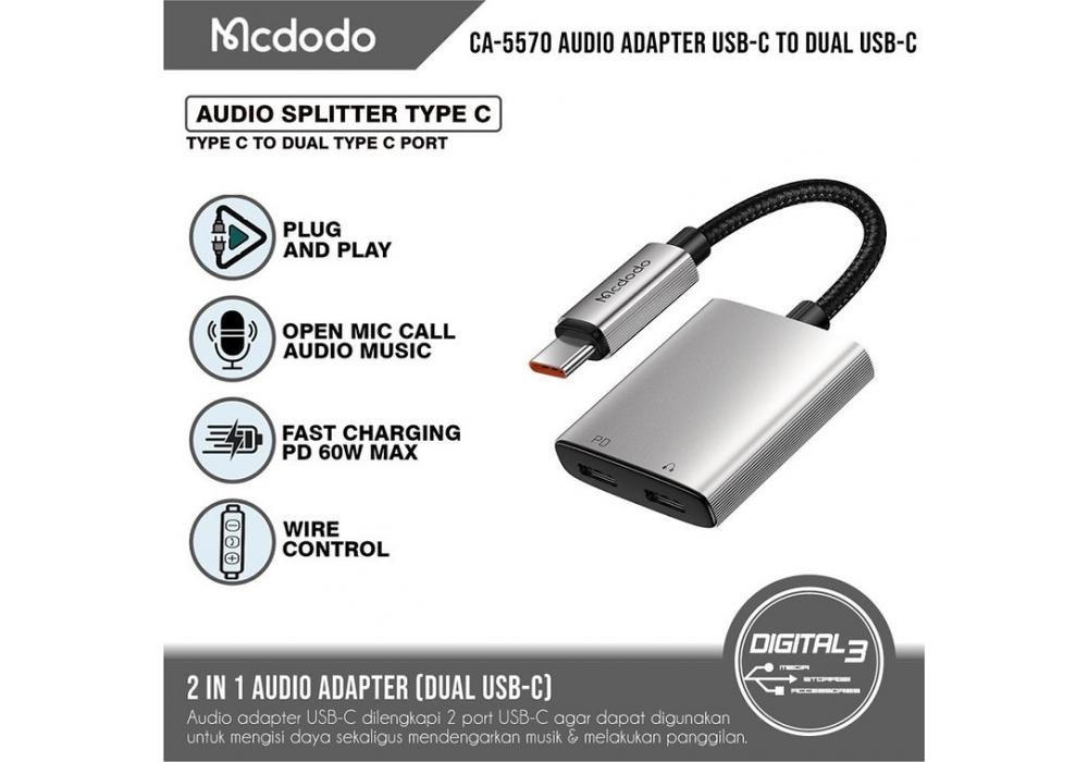 Mcdodo 2 in 1 USB-C to USB-C + DC 3.5mm Audio Converter Adapter, PD, 60W Rapid Charging, Music Playback, Instant Access, Type-C Earphone Converter Adapter, Charging, Aluminum Alloy Exterior, Headphone