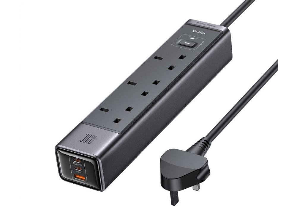 Mcdodo Surge Protection Power Strip with 6 Outputs Including 2 USB-C Ports,1 USB-A Port,& 3 AC Outlets USB-C port supports Max.30W fast charging for laptops, phones – 18 Months Warranty