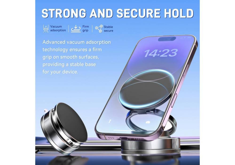 NEW Vacuum Magnetic Phone Stand Compatible, 360° Foldable Multi-Angle Adjustable Mount for Car, Bathroom, and All Smartphones