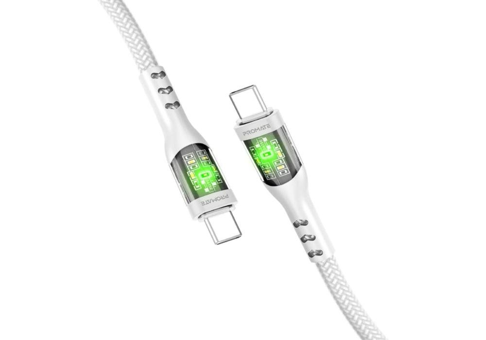 Promate TransLine-CC USB-C to USB-C Cable 60W Power Delivery Transparent Shells 120cm Nylon Braided Cord- White