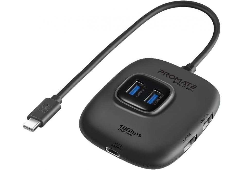 Promate USB-C Hub, 5-in-1 Type-C sync/Charge Adapter With USB-A Adapter, 100w USB-C Power Delivery Port, 10gbps 4 USB 3.2 Ports, & Compact Design For Macbook Pro, Samsung Chromebook Plus