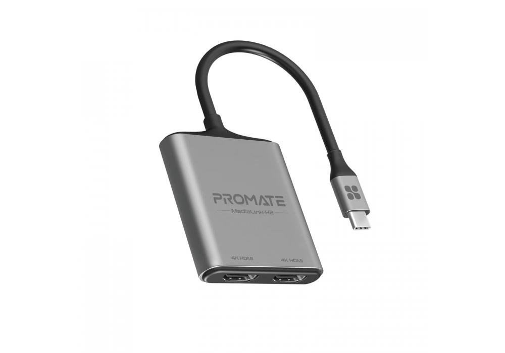 PROMATE 4K USB-C Connector to Dual HDMI Adapter. Compatible with All USB-C Output Devices Including Win, iOS, & Android. Easy Plug & Play. GreyMirror your USB-C laptop to view your favourite TV shows and movies in an enhanced, high-resolution display on your external monitor. Simply plug and play with no complicated drivers or installation needed. Compact & easy to use make this HDMI adaptor is a must need USB-C peripheral. Features:4K HDMI Support: Enjoy a crisp, clear display that is perfect for videos, games or presentations, the adapter supports up to 4K HD output at 60HzPlug & Play: Just connect the adapter from the USB-C port of your laptop to the HDMI input on your display or projector, and get started right awayCompatibility: MediaLink-H2 is compatible with all devices supporting Video/Audio output over USB-C