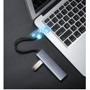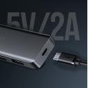 Input: Type C MaleOutput: USB 3.0 A Female × 4 USB 3.0 speed up to 5GpbsWith micro USB power portPlug & playABS case+ Metallic paintSize: L104*W30*H10 mmCable length: 15CM