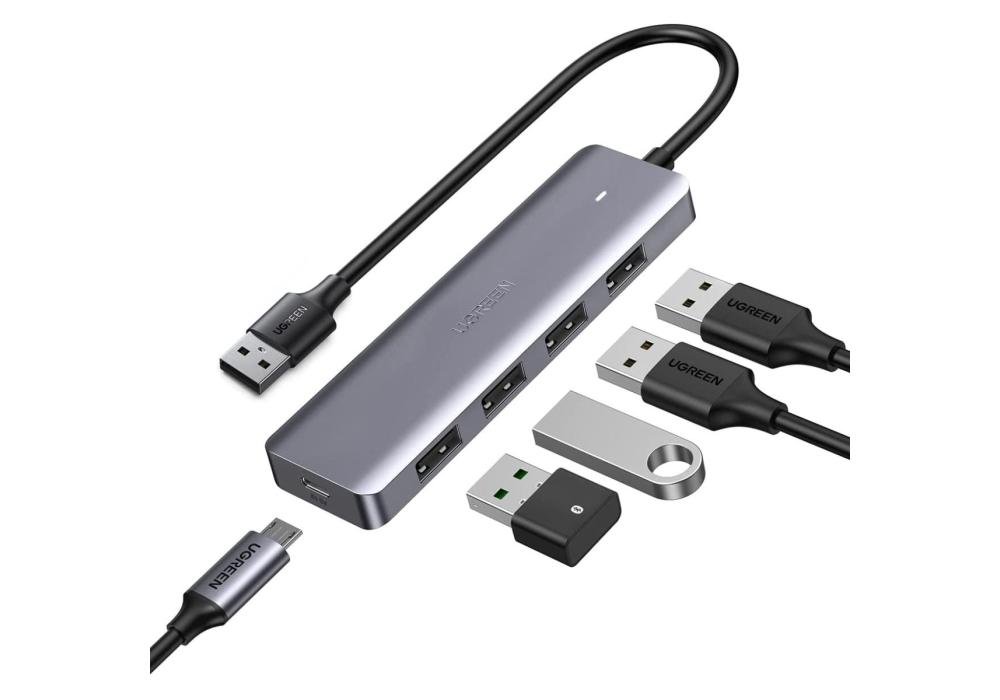 UGREEN CM219 USB 4-Port 3.0 Hub with Type C Power Supply, Metal Plated Shell, Ultra Slim