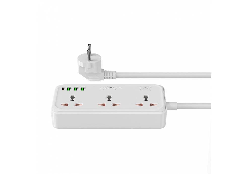 Product Description Model: Wi-S005Declutter your space and supercharge your productivity with the WiWU Cube 7-in-1 GaN Power Strip. This is the only power hub you need for a modern workspace. It intelligently combines three universal AC outlets with four powerful USB ports, allowing you to power up to seven devices at once from a single source. The dedicated USB-C port, powered by advanced GaN technology, delivers up to 30W of fast charging for your smartphone, tablet, or other compatible devices. The AC sockets are thoughtfully spaced wider apart to accommodate bulky plugs without blocking adjacent outlets. Built with high-quality, fire-retardant materials and featuring smart USB charging for stable, device-safe power, the Cube Power Strip is the ultimate blend of performance, safety, and minimalist design.Product Features:1. Ideal for Home & Office Use – Reliable and efficient.